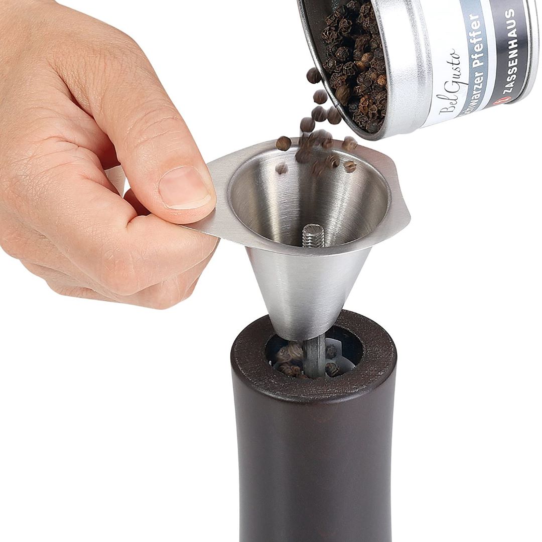 stainless steel funnel for coffee beans, salt and black pepper